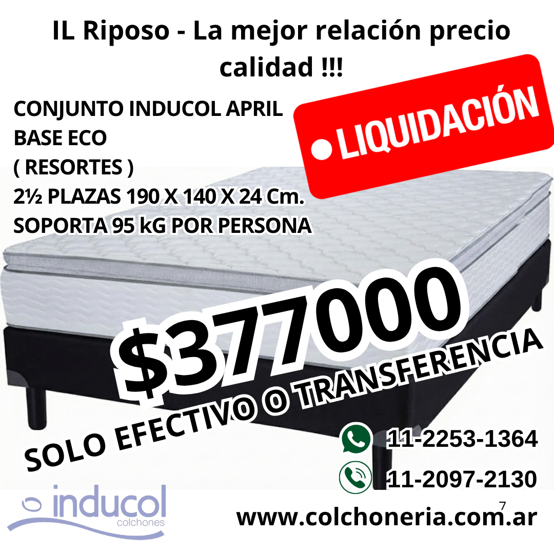 Inducol April Colchón y Sommier Eco 2½ Plazas 190 x 140 Cm.